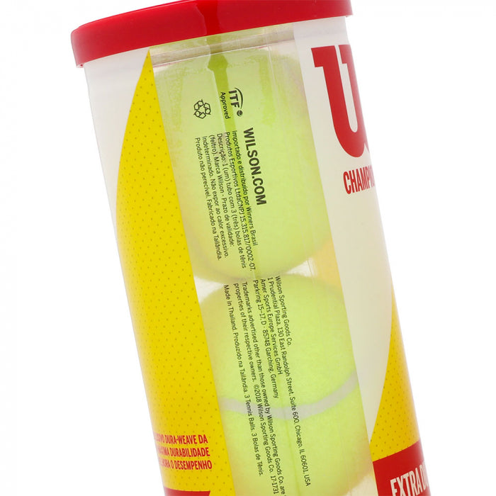Com a missão de fornecer produtos esportivos que permitam todos, desde o iniciante até o atleta profissional, a conseguirem os melhores resultados e o maior entretenimento no esporte, a Wilson está sempre surpreendendo em tecnologias e inovação. A Bola de Tênis Wilson Championship é uma bola muito mais durável que as tradicionais, é o modelo ideal para qualquer superfície de quadra, seu feltro exclusivo tem máxima durabilidade e melhora o desempenho do tenista.