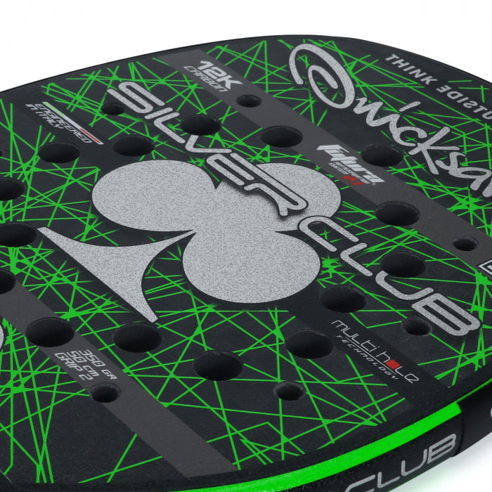 - Tecnologia: MULTI-HOLE com furos espalhados na região central da raquete, que facilitam a passagem de ar tornando os movimentos rápidos e leves e o exclusivo e patenteado FUTURA SYSTEM, um dispositivo tecnológico que permite uma redução consistente das vibrações causadas pelo impacto contínuo da bola, amenizando traumas do pulso, de cotovelo e de ombro, ao mesmo tempo em que mantém a raquete no mais alto nível de jogo. EVA Black alta densidade, para maior sensibilidade e excelente controle;