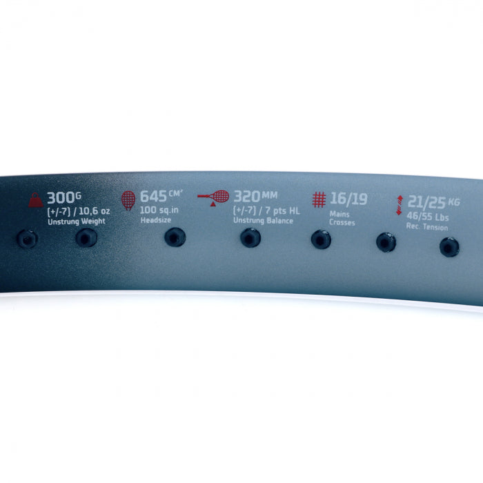 FSI Power Technology – furos em forma de diamante e espaçamento mais largo das cordas aumentam o ponto doce, gerando mais potência e spin.